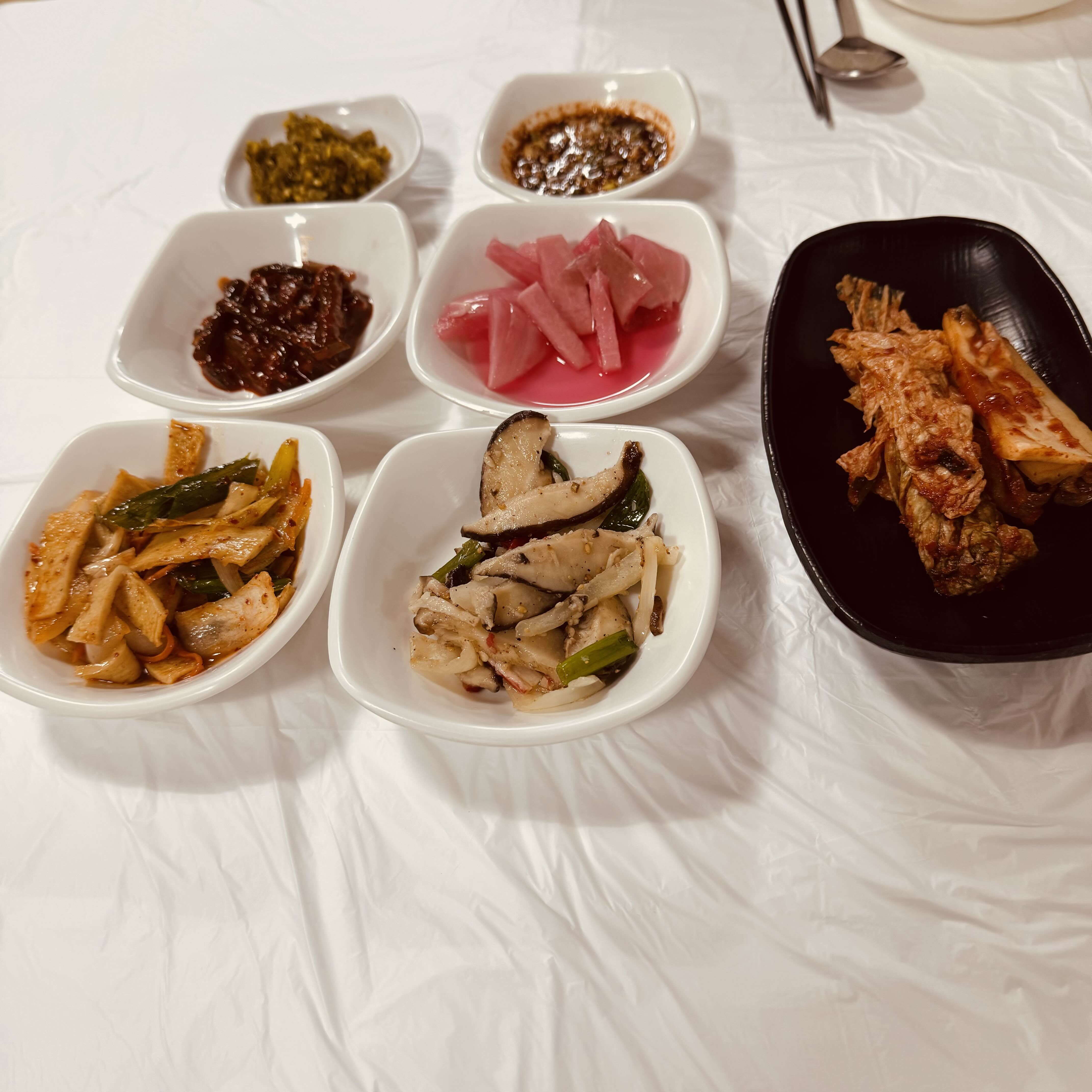 먼저 기본 반찬을 주시고 반찬들이 너무 맛있었습니다 반찬을 먹고 모자르면 셀프 코너에 가서 더 가져오는 시스템이고